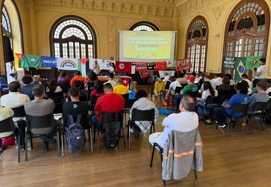 A mesa “Os desafios da classe trabalhadora na luta por soberania energética”, contou com a presença de Pedro Damásio, da Federação Nacional dos Urbanitários (FNU), Cloviomar Caranine, do Departamento Intersindical de Es­tatítstica e de Estudos Socioeconômicos (DIEESE), Lucas Mazotti, da Federação Única dos Petroleiros (FUP), Tatiane Paulino, do MAB, Tiago Vergara, do Sinergia SC e da Confe­deração Nacional dos Urbanitários (CNU) e Luis Raúl López Ibañez, do capítulo cubano do Movimiento de Afectados por Represas (MAR) e do Centro Memorial Martin Luther King Junior. Durante o debate, foi apresentada a proposta de plano de trabalho da Plataforma para o ano de 2026. No documento, é reafirmado “o compromisso histórico com a organização popular e a luta para a construção de uma po­lítica energética popular e proletária, baseada na soberania nacional, na distribuição da riqueza e no controle social”.
