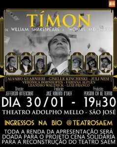 Dia 30/01 – 19h30 – TÍMON, de William Shakespeare e Thomas Middleton